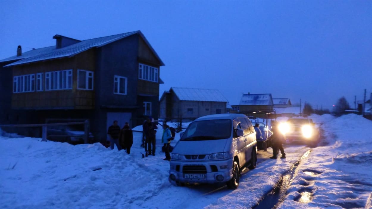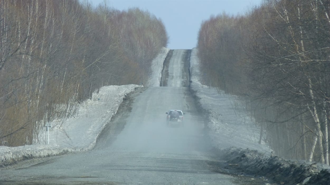 11th April :- Today we head to Klyuchi. Up at 5am for breakfast, very difficult to eat at that time of the morning. Two 4x4 vehicles with trailers turn up at 5.30am, start packing the trailers with all our gear that is coming with us. At 6.30am we leave for our 13 hour 600km journey to Klyuchi, the military town and last place of any type of civilisation. In one 4x4 me, Richard, Elena and our driver, in the other Julia, Warwick, Martin and Igor. The roads are covered in snow and it starts snowing again, the tarmac runs out and pretty quickly you are on unsealed roads when you are not on snow! We see plenty of broken down vehicles that have been abandoned. We really want to sleep but don’t want to close our eyes and miss anything. We meet up en-route several times for photography and video sessions and then stop for lunch in a village on the way. I had mashed potatoe, beetroot salad, mixed veg salad, cabbage doughnut and fruit tea! You tend to eat lots of small dishes here, bit like Spain with Tapa. This is enormous tough country, as we start to near our destination we began to get a brief glimpse of Kluchivskoi and Tolblachik through the cloud. During the 13 hour drive 2 things I thought of, among many other things, must come back and visit this place again and how on earth did the people from the book “The Long Walk” endure this hostile territory when they escaped from a prison camp in Siberia during winter wearing rags! Seriously read the book. Arrived at our hotel, packed our kit that was to come into the mountains with us, Elena cooked dinner and then it was bed after a very long day.