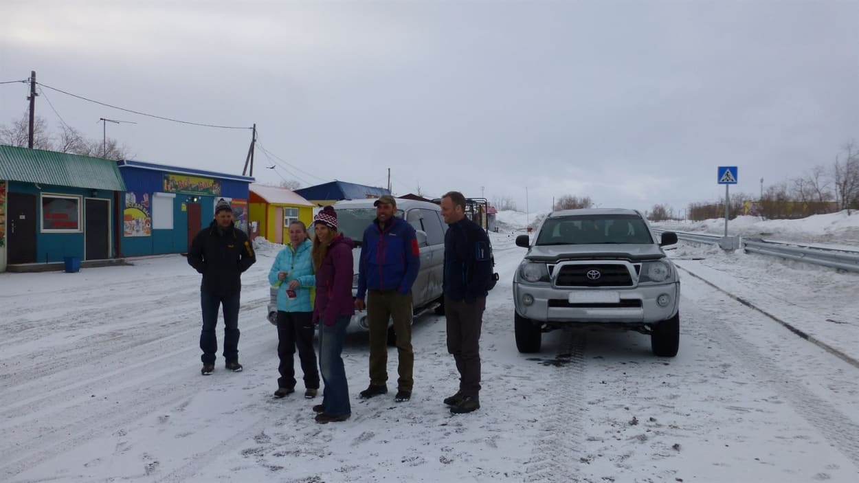 9th April :- Arrive in Kamchatka at 10am met at the airport by Martha (logistics and everything else to do with Kamchatka, highly recommend her friendly services) and Igor (expedition guide) who take us to our lodgings for the night. Now I have to say this is an airport with a view, as soon as you are off the plane you are looking at volcanoes. We spend the afternoon relaxing, going through gear and discussing a plan of action. Martha asks for our passports and migration pieces of paper that we were given when we entered the country, we have to be registered with the police, ummm turns out we lost one (Richard’s) somewhere along the way in all the chaos at the airport in Moscow! Elena (expedition cook) turns up to meet us, talk about the food for the trip and cook our dinner. We eat and drink again, hohum it’s hard on these expedtions.
