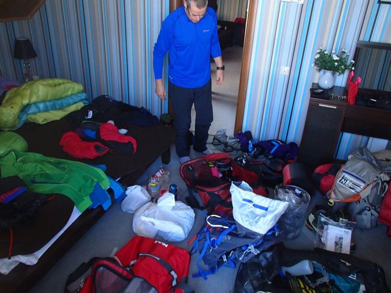8th April :- We all meet for breakfast and afterwards sort through gear, there is a lot of gear. Julia and Warwick had to bring 2 sets of extra clothing because ours never turned up and the chances of it turning up in Russia before we left were near on nil and couldn’t be risked. The day before Julia and Warwick left for their flight they made a dash to the Berghaus warehouse to get us our kit. We have 8 luggage bags, 5 ski bags and 5 hand luggage, ooops this is going to be fun. We leave for airport at 3pm to fly to Petropavlovsk-Kamchatsky in Kamchatka. Now Russian airports are funny places, you enter the door to the airport and immediately you have to go through security, yep trouble. Imagine us with all our gear, one scanner and lots of other travelers. We started putting our gear through the scanner then realised some of us need to be on the other side to retrieve the luggage, complete chaos and much laughing but we eventually manage to get us all and our luggage into the airport. We go to check in and Aeroflot are not happy with us and all our luggage (they did state on their website that ski bags go free but none of us saw the date it ends), there is a language barrier and a lot of confusion, being sent here, there and here and there, a lot of money handed over along with passports etc. We nearly miss our flight. We have a good flight, personal tv screens on the seats, watched a few movies, drank and ate and crossed 9 time zones and landed just one hour away from yesterday!