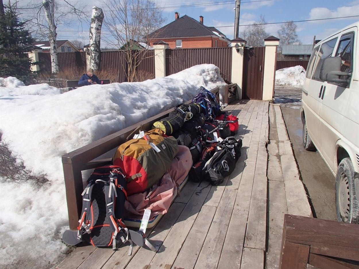 17th March :- Start trying to work our way through the complexities of Russian Visa applications. Realise Richard’s passport will run out 3 days early. Emergency trip back to UK on 19th to get a new passport. Finish off the Russian Visa applications, send them to Madrid with passports. The visas and passports turn up 4 days before we leave. 6th April drop the dogs off at kennels, hate leaving them. Berghaus clothing does not arrive so have to pack our own clothing just in case it does not turn up in Russia! Clothing turns up in Lanjaron the day after we left!