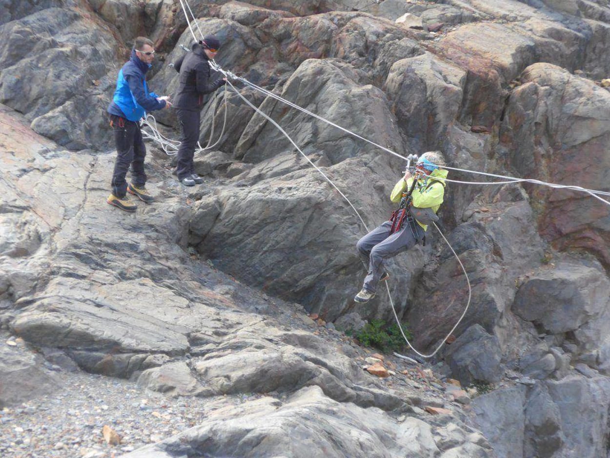 The usual time consuming crossing of the snout of the Tunel glacier gave some problems, but we all ended up at the Tirolean Traverse across the Rio Tunel. Infinitely preferable to the river crossing as our feet were just drying out from the wet experiences of the icecap.